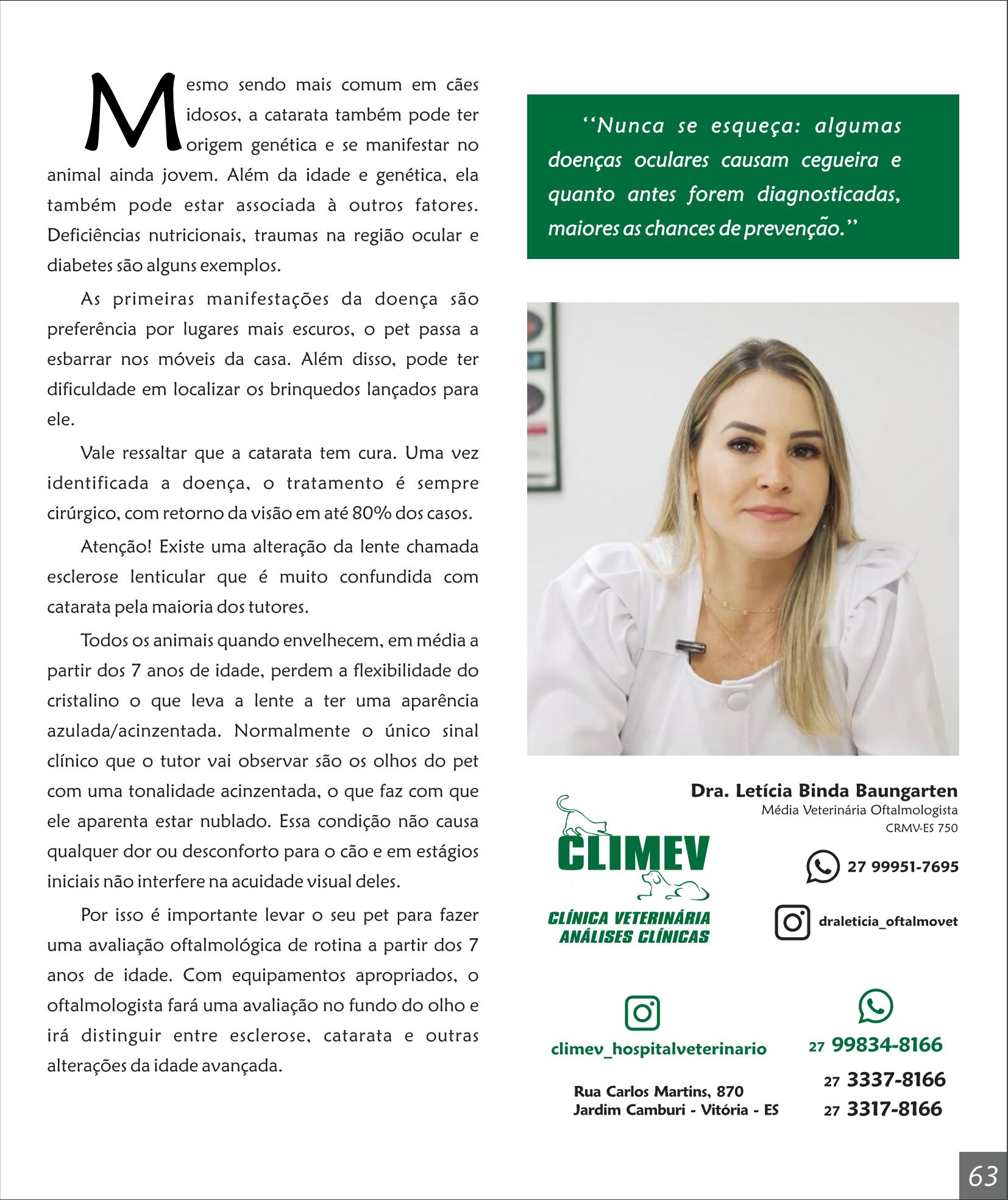 A catarata é uma doença ocular que deixa a lente (cristalino) do olho esbranquiçada e impede que a luz chegue na retina, prejudicando a visão do animal. Pode acontecer de forma uni ou bilateral.