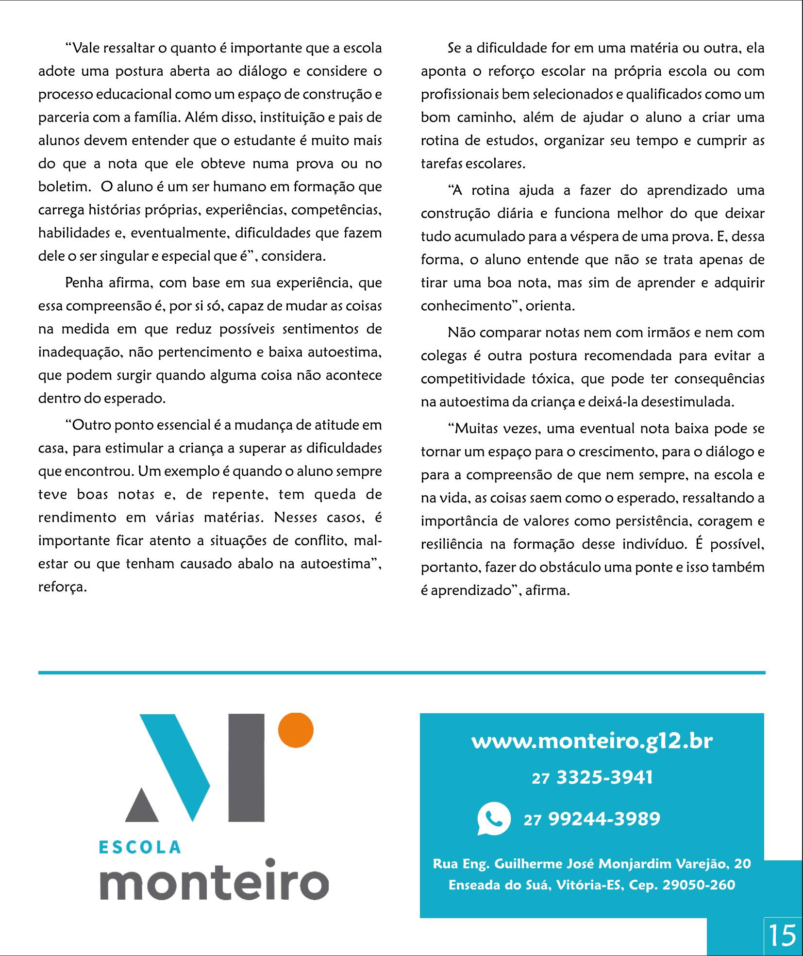A boa notícia, ao começar mais uma etapa do ano letivo, após as férias de julho, é que, se as coisas não andam como se gostaria, ainda há tempo para recalcular a rota. Quem dá as dicas é a diretora pedagógica da Escola Monteiro, Penha Tótola, que acumula mais de 30 anos de experiência em educação.