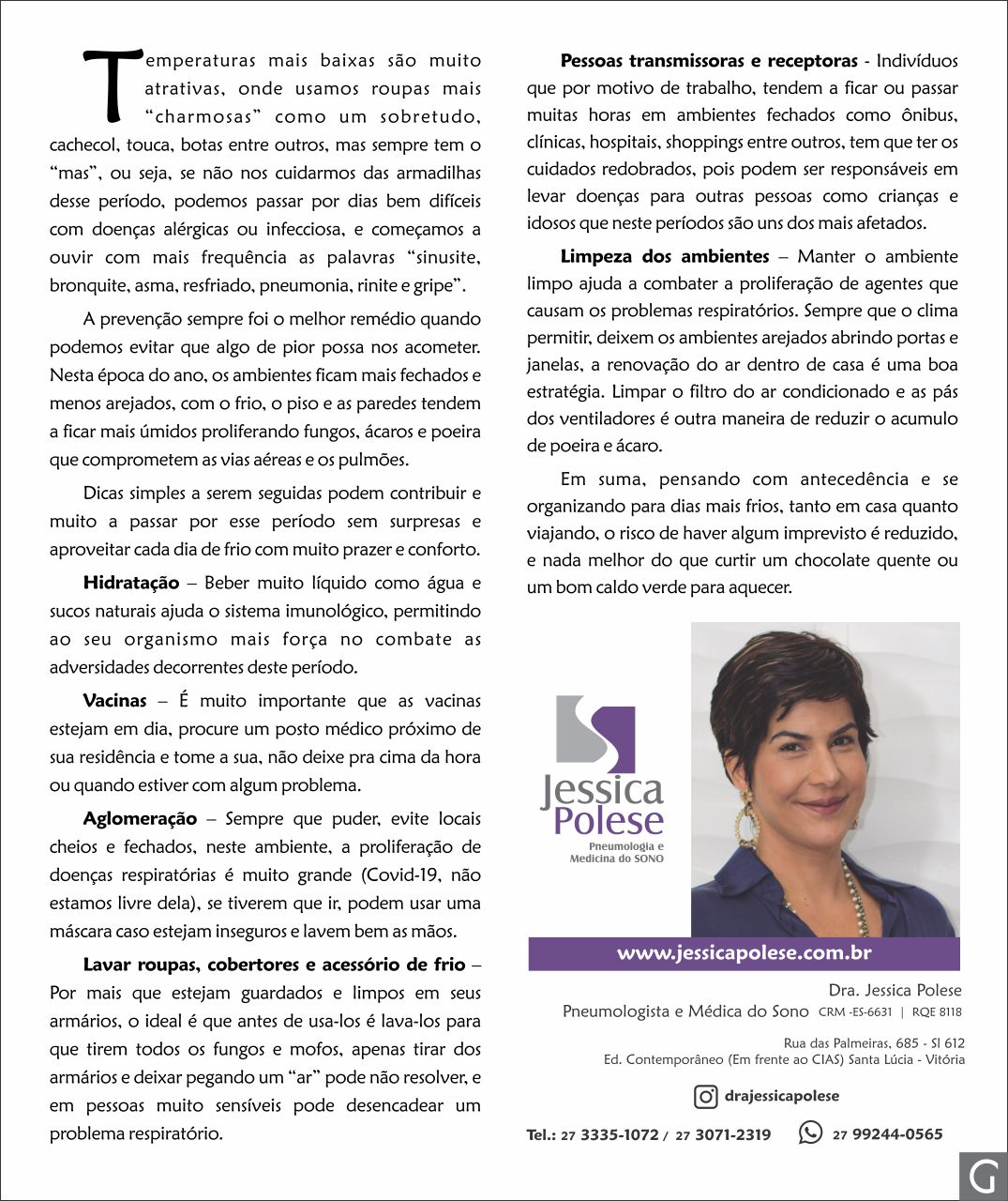 Temperaturas mais baixas são muito atrativas, onde usamos roupas mais “charmosas†como um sobretudo, cachecol, touca, botas entre outros, mas sempre tem o “masâ€, ou seja, se não nos cuidarmos das armadilhas desse perÃodo, podemos passar por dias bem difÃceis com doenças alérgicas ou infecciosa, e começamos a ouvir com mais frequência as palavras “sinusite, bronquite, asma, resfriado, pneumonia, rinite e gripeâ€.
